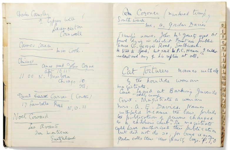 Known as a slightly contentious figure, Edith Sitwell stepped away from convention. As well as breaking boundaries in both her writing and her fashion sense. Her address book reads like a 'Who’s Who' in the world of music, theatre, publishing, film, ballet and politics. Entries detailing aristocracy, celebrities, family members, international publishers and press contacts.