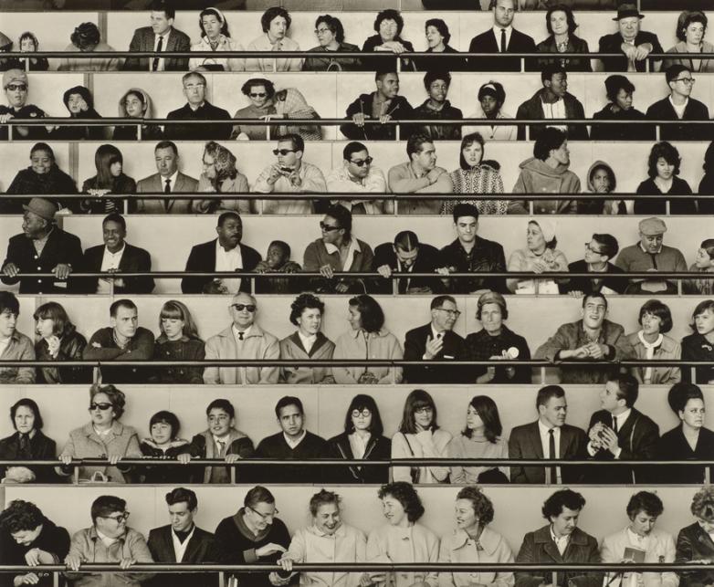 Among Others presents the seemingly endless possibilities of the group photograph, placing historically important portraits alongside records of significant cultural moments and experiments that helped reinvent the genre. In representations of the group, artist, subjects, and circumstances come together to create an image that might call to mind a loving family, a chance encounter among strangers, an embodiment of the democratic spirit, or a photographer’s ability to read and respond to a crowd. The photographs in the exhibition come in many formats: not just exhibition prints, snapshots, and posters, but also photo books, painted wooden sculpture, collages, baseball cards, and even a wastepaper basket featuring Richard M. Nixon. In their range and ingenuity, the works pose questions about family, diversity, democracy, representation, and the varieties of visual delight.