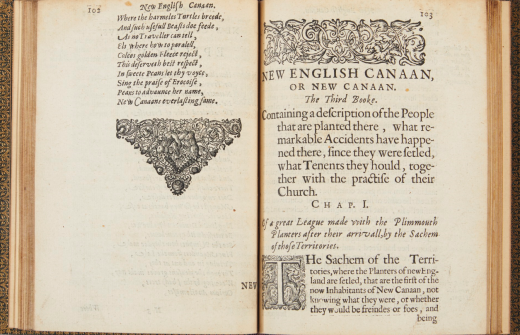 THOMAS MORTON (1564-1659), New English Canaan or New Canaan. Containing an Abstract of New England, Composed of three Books. Amsterdam: Jacob Frederick Stam, 1637. Estimate: $35,000–45,000.