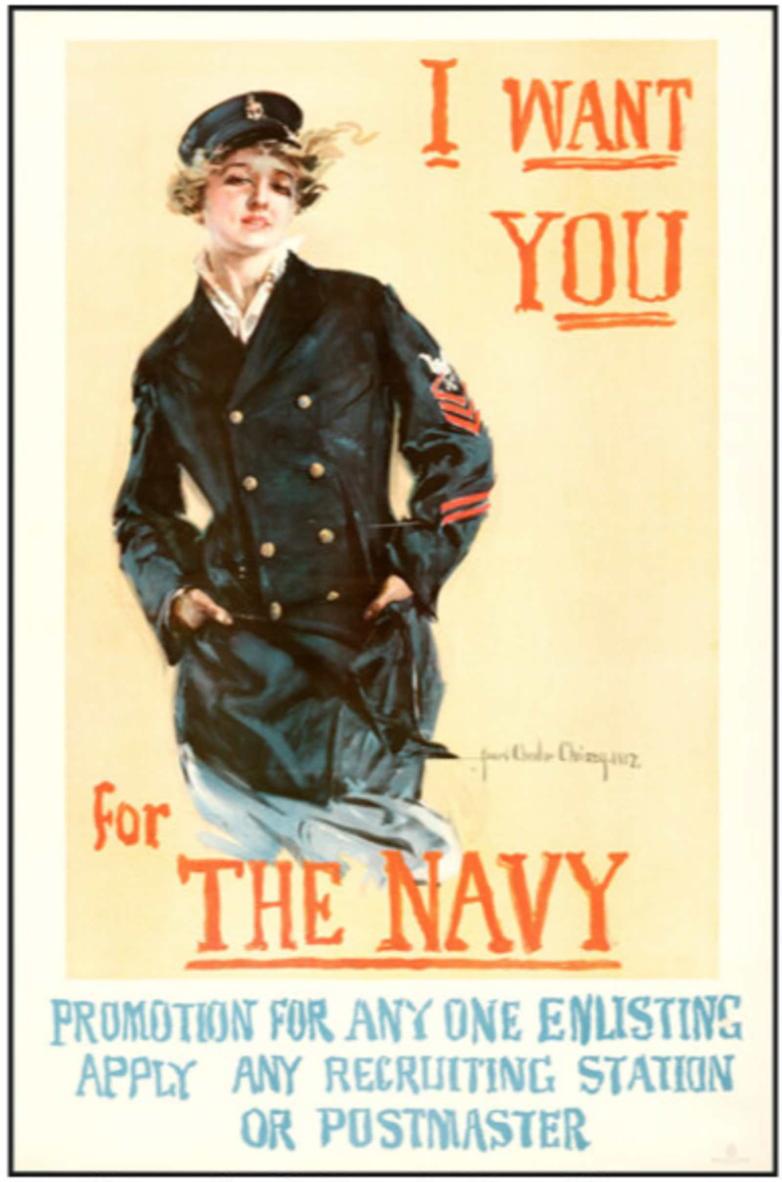 * World War I recruiting poster (U.S. Navy, 1917), 26.5" X 40.5", I Want You for the Navy. The work of Howard Chandler Christy, war illustrator and creator of the famous 'Christy Girls'.