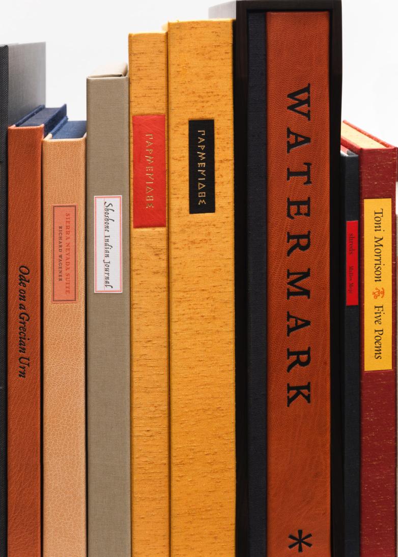 In 1990, with Herakleitos, Koch began a series of works by Greek pre-Socratic philosophers that ventured into a new realm of art practice. “Herakleitos led me out of the framework of traditional typographic refinement into what I believed to be the arena of the book as a work of art,” he said in a 2015 interview. Several works based on Greek philosophical texts followed. The Fragments of Parmenides (2004), a ten-year, multi-faceted collaboration with poet/translator Robert Bringhurst, stonecutter Christopher Stinehour, type designer Dan Carr (whom Koch commissioned to cut and cast a new Greek type for the edition), typesetter Richard Seibert, engraver Richard Wagener, and bookbinders Peggy Gotthold and Daniel Kelm.