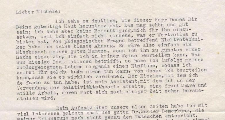 Typed letter in German signed by Albert Einstein, addressed to friend Michele Besso, regarding the theory of special relativity. Estimate: $45,000-55,000