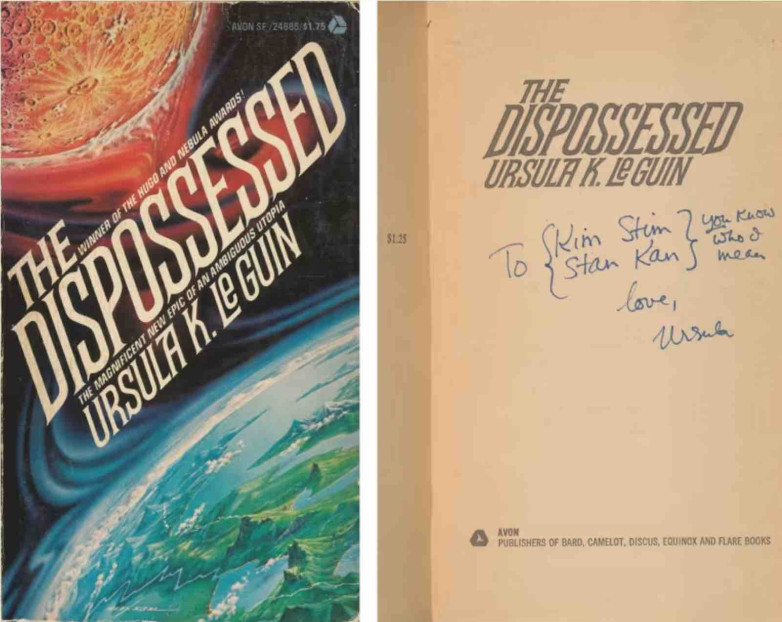Copy of The Dispossessed by Ursula K. Le Guin, 1985. Inscribed to Kim Stanley Robinson by Ursula K. Le Guin.