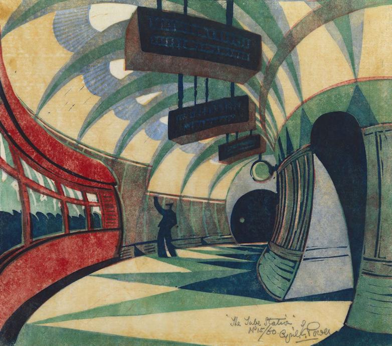 The Tube Station, linocut by Cyril Edward Power, c1932