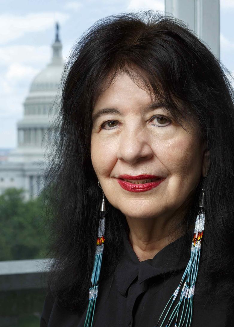 “What a tremendous honor it is to be named the U.S. Poet Laureate,” Harjo said. “I share this honor with ancestors and teachers who inspired in me a love of poetry, who taught that words are powerful and can make change when understanding appears impossible, and how time and timelessness can live together within a poem. I count among these ancestors and teachers my Muscogee Creek people, the librarians who opened so many doors for all of us, and the original poets of the indigenous tribal nations of these lands, who were joined by diverse peoples from nations all over the world to make this country and this country’s poetry.”