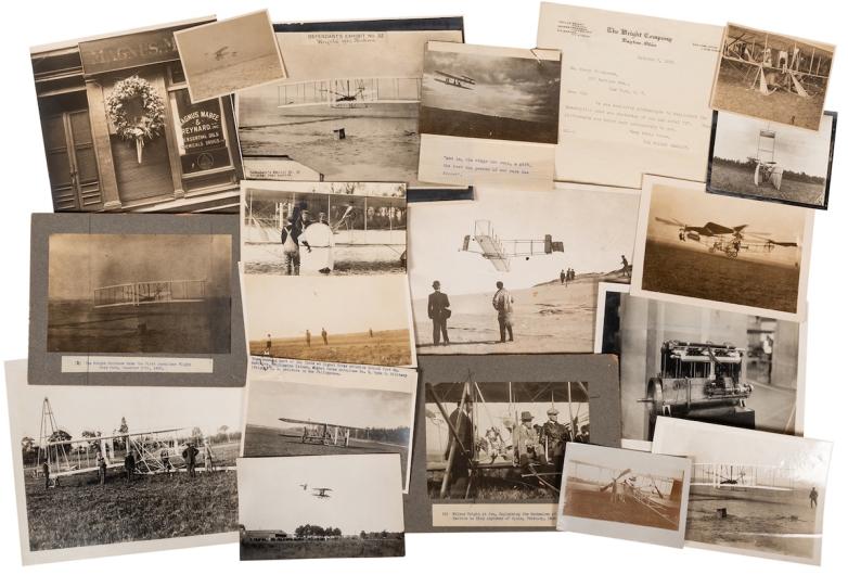 •    Lot #905, an Orville and Wilbur Wright photo archive from c. 1904-1915, is estimated at  $6,000-7,000. This collection is from aviation writer and historian Henry Woodhouse and includes 62 Wright brothers photos and a letter of provenance from the Wright Company of Dayton, Ohio.