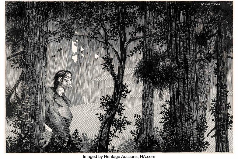 Wrightston’s front endpapers for Mary Wollstonecraft Shelley's Frankenstein sold for $240,000 – by far, the highest price Heritage Auctions has realized for a piece by the artist best known for his work on Swamp Thing. Bidding opened at $75,000 Thursday and quickly skyrocketed toward the final sale price.