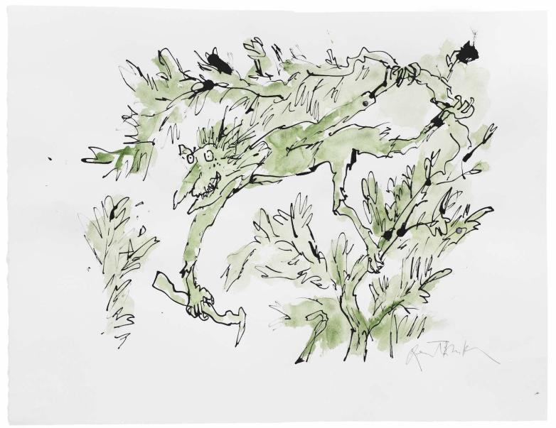 Sir Quentin Blake, Wild Man of the Wood signed 'Quentin Blake' (lower right) pen and ink and watercolour on paper 39.4 x 50.5cm. (unframed) Executed in 2023. Estimate £1,500-2,000.