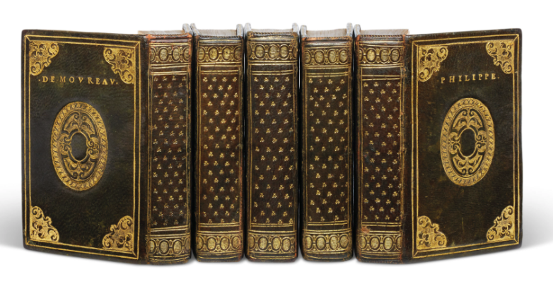 At Christie's Paris on Tuesday, March 23, the first part of La bibliothèque poétique de Jean Paul Barbier-Mueller, in 121 lots. A number of Pierre de Ronsard editions are expected to sell well, including a copy of the five-volume third collected edition of Ronsard's works (1571), in a period binding bearing the name of the original owner, Philippe de Moureau. This copy's fifth volume was separated from the set at some point in the twentieth century, and reunited by Pierre Berès. At this sale it is estimated at €150,000–200,000. A mixed set of the second collected edition (1567), with annotations by Jean de Piochet in three of the volumes, could sell for €80,000–120,000. A volume containing three Ronsard titles published 1553–1555, in a mosaic binding with the arms of Pierre de Brisay de Denonville, is estimated at €60,000–80,000. Two works by Joachim du Bellay, La Deffence and L'Olive (1549), bound together and from the library of Marcus Fugger, are estimated at €100,000–150,000.