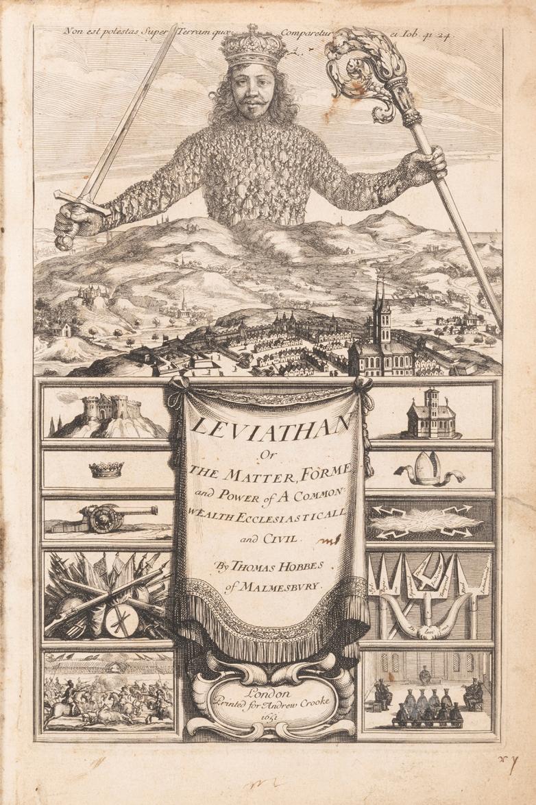 Detail from the title page of Thomas Hobbes' Leviathan (1651), offered at Potter & Potter Auctions this week.