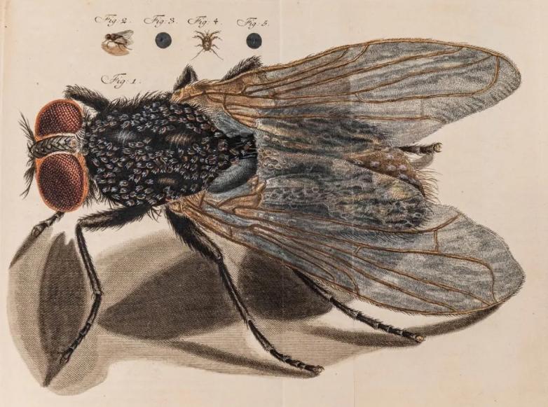 Magnified fly from Amusement Microscopique, offered at Canada Book Auctions this week.