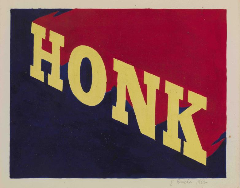 HONK, 1962, by Ed Ruscha. Acrylic paint on paper.