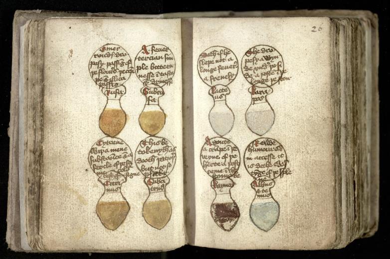 Fifteenth-century drawings of urine flasks from the Curious Cures project at Cambridge University Library.