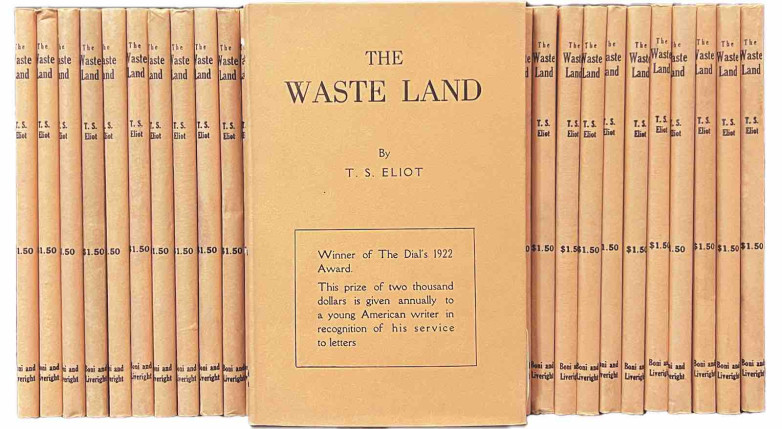 In the meantime, Eliot signed a contract with Boni & Liveright for its American publication in book form. Liveright allowed The Dial to publish the poem without notes, but in exchange The Dial agreed to pay Eliot the regular rate for poetry of ten dollars per page, a total of $130. They announced Liveright would soon be publishing the poem with notes, bestowed the annual Dial Award for service to American Letters on Eliot, along with the $2,000 prize money, and they purchased 350 of the 1,000 first edition copies Liveright published in 1922.