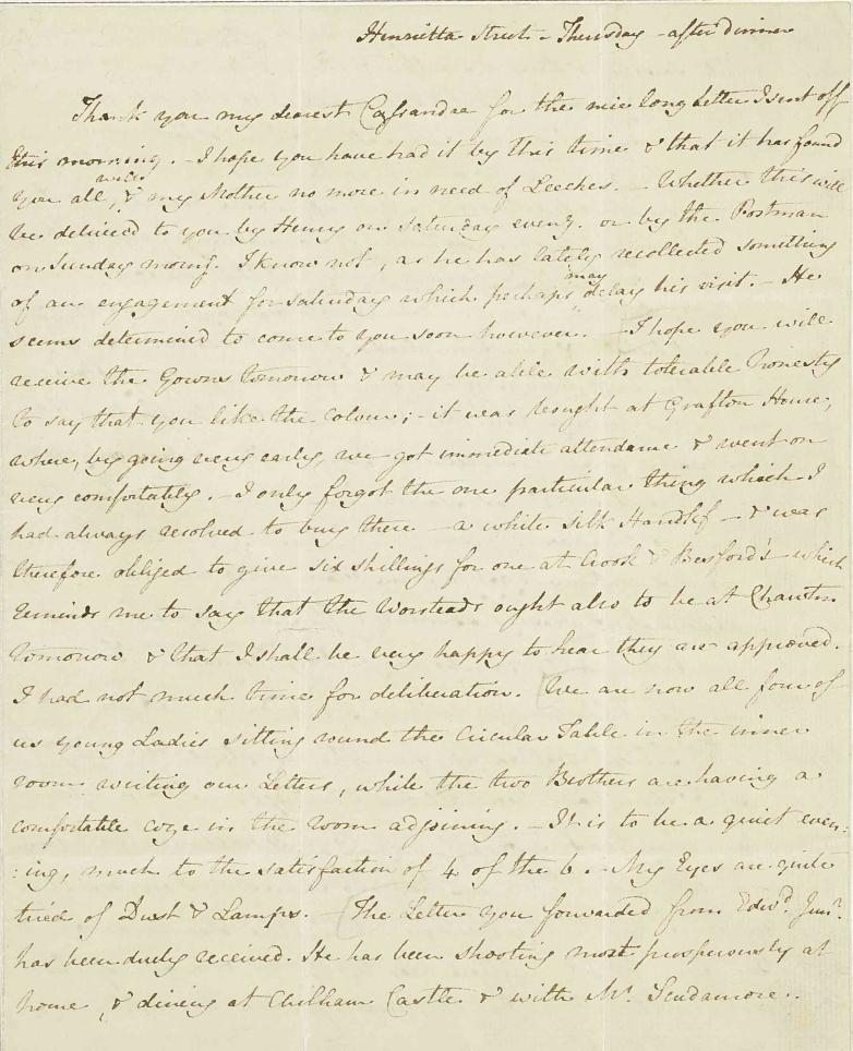 Handwritten letter from Jane Austen to her sister Cassandra, September 1813. Price realized: $200,075.