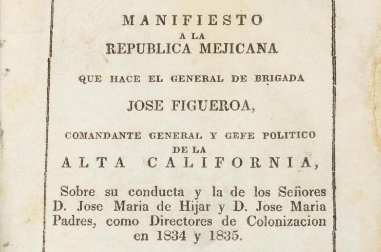 José Figueroa’s Manifiesto a la Republica Mejicana, 1835.