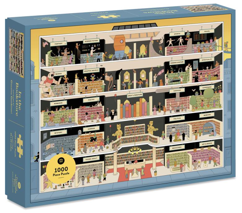 If our collective newfound love of puzzles hasn’t abated, here’s one that is perfect for a long winter’s night: “In the Bookstore,” set up like an actual bookstore with sections for science fiction, travel, and young adult, among other genres. Not only will the 1,000 pieces keep a reader busy, there are literary references to spot throughout. $16.95