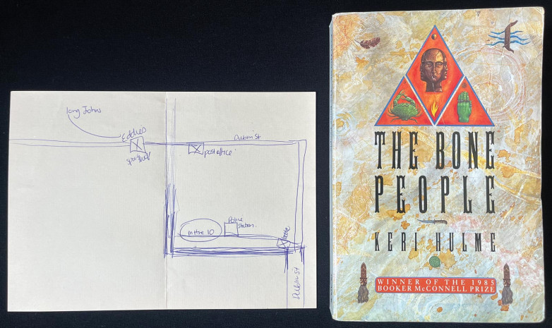 A hand-drawn map found in a copy of Keri Hulme’s The Bone People