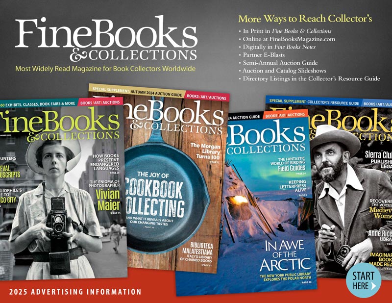 Fine Books & Collections (FB&C) is copyright © 2025 Journalistic, Inc.. All rights reserved. No part of the magazine or web site may be reprinted, photocopied, or distributed in any manner without the express written consent of Journalistic, Inc.
