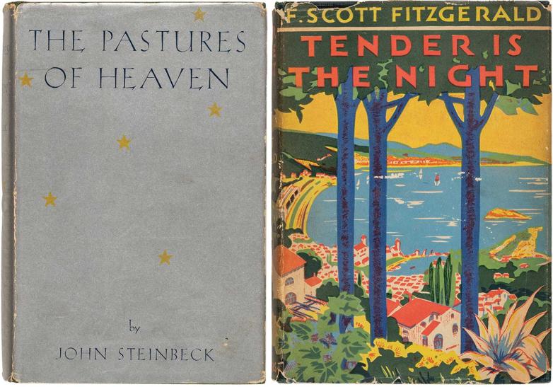 A first edition of John Steinbeck’s The Pastures of Heaven (1932, estimated at $6,000–8,000), at left. A first-edition of F. Scott Fitzgerald’s Tender is the Night (1934, estimated at $5,000–7,000), at right.