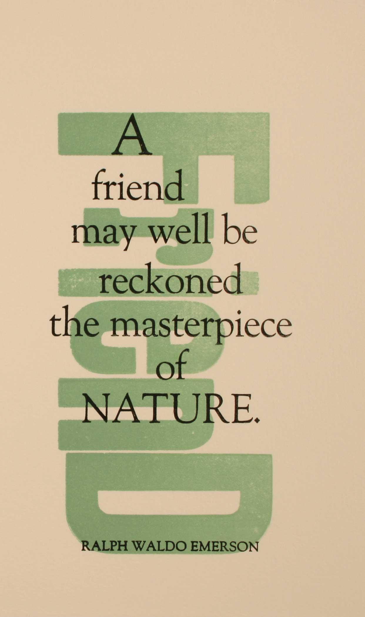 AK: Pam Barry was teaching a book arts class at Artists Book Works in Chicago. I took two classes there, became an advanced member, and could come after hours. I printed there another six months, and then got a free Vandercook 4. Moved it into my basement in Oak Park, under the staircase to what used to be the coal room. A couple of weeks later, Pam, another printing student named Mary Kennedy, and I went to a swap meet of the Midwest Amateur Printers Association. One of the members told me he had a 30 pica, 1-line job stick if I wanted to stop by his place and pick it up. I did, and as I was leaving he pointed to a wall with four type cabinets full of beautiful foundry type and asked me if I would like to have them. That’s when my life changed, and I became a printer.