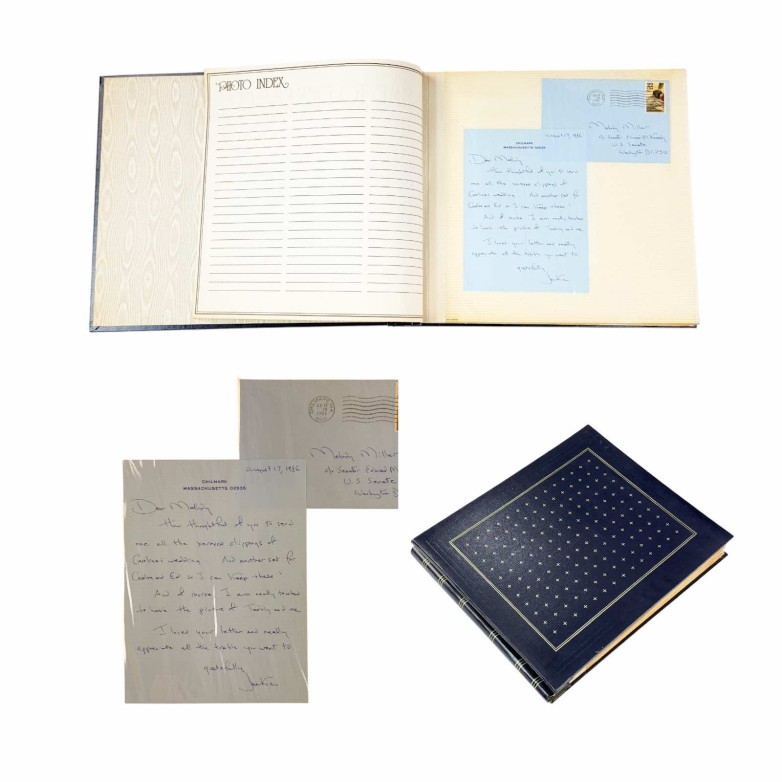 Melody J. Miller’s personal album of more than 65 autographed and signed typed letters received from various members of the Kennedy family, including a handwritten letter from Jacqueline Kennedy, and many items of correspondence from politicians, celebrities and other notables. Estimate: $2,000-$3,000