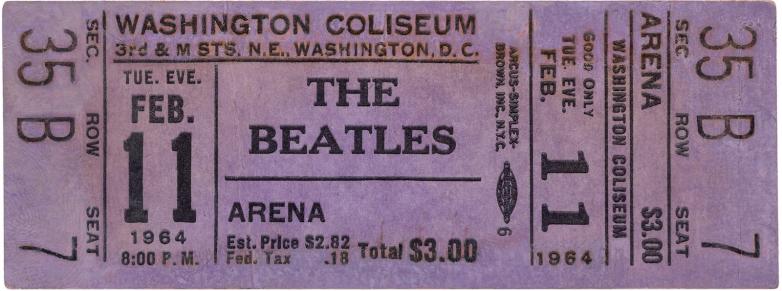 Beatles unused concert ticket for first US concert in Washington D.C.