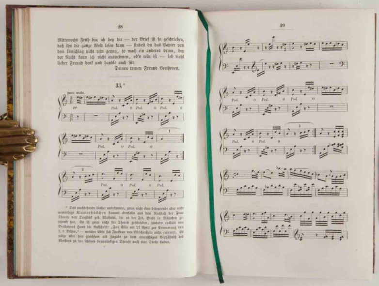 Contains first printings of Für Elise and other works. Composed on April 27, 1810, it was first published in the present volume after having been discovered 40 years after the composer's death in 1827.