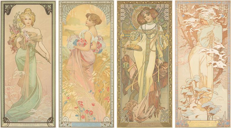 Alphonse Mucha’s ornate designs remain a staple for collectors. Two sets of his decorative panels for the four seasons claimed top sales: the 1896 set of The Seasons was won for $43,200.