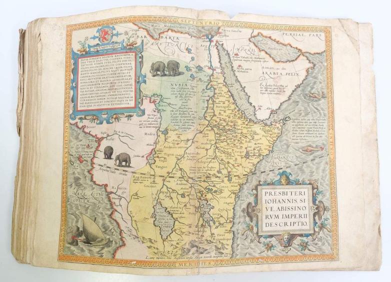 In need of some love to the binding, but still with 45 beautiful engraved double plates is the Ortelius World Atlas, with a very realistic reserve, and the potential to make a substantial addition to any atlas collection.