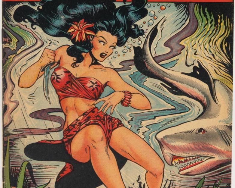 One of the lots that attracted the most interest was the Seven Seas Comics #4 with a CGC of 6.5. It has a classic cover, featuring Matt Baker's tropical beauty, Alani the "South Sea Girl," fighting a great white shark. This mag has gone white-hot with fans and investors in recent years. Speculator site Comicbookinvest.com picked Seven Seas #4 to share the number one slot in a 2019 list of the five hottest Matt Baker covers. The copy fetched $18,750 at PBA Galleries.