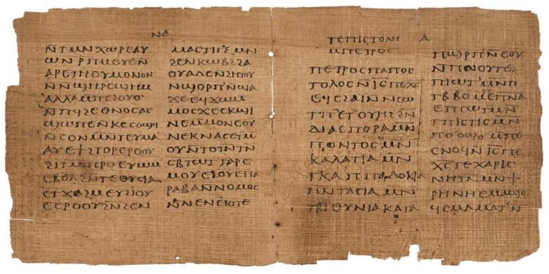 The Crosby-Schoyen Codex is written in Coptic on papyrus around 250-350AD at the point when papyrus scroll began morphing into codex format. Its 52 leaves/104 pages - preserved now behind plexiglass - were completed by a single scribe over 40 years in an Egyptian monastery and contain the first epistle of Peter and the Book of Jonah making it the earliest known surviving Christian liturgical book.