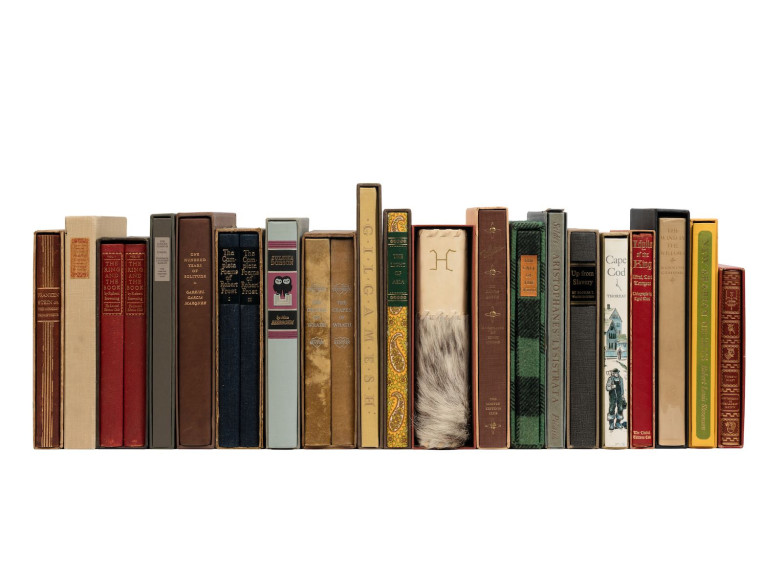 Also going under the hammer is a complete run of Limited Editions Club publications (1929–2010, Lot 131) with an estimate of $50,000 – $60,000, believed to be the only complete run of these works to ever appear at auction. Founded by George Macy, the Limited Editions Club produced works of world literature with accompanying illustrations by artists such as Pablo Picasso, Henri Matisse, and Thomas Hart Benton. Each title was issued in numbers of 1,500 and was sold to club members for an annual subscription fee of $10 (roughly $150 today). Under later leadership, the club continued this tradition, adding works by modern artists like Faith Ringgold, Robert Motherwell, Phoebe Beasley, and Balthus.