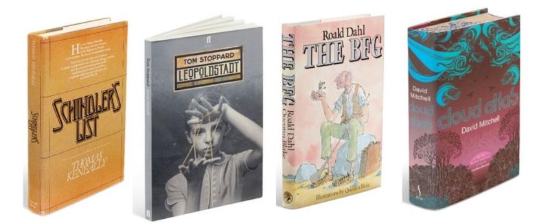 Authors: John le Carré, (1931–2020). The Spy Who Came in from the Cold. London: Victor Gollancz, 1963. (Illustrated on page one top). (Estimate £8,000 – 12,000), realised £35,280; Hilary Mantel (b. 1952), Bring Up the Bodies. London: Fourth Estate, 2012. (Estimate £4,000 – 6,000), realised £30,240; David Mitchell (b.1969), Cloud Atlas. London: Sceptre, 2004. (Illustrated below far right).  (Estimate £4,000 – 6,000), realised £27,720; Tom Stoppard (b.1937), Leopoldstadt. London: Faber and Faber, 2020. (Illustrated below second left). (Estimate £2,000 – 3,000), realised £21,420; Alan Bennett (b.1934), The History Boys. London: Faber and Faber, 2004.  (Estimate £4,000 – 6,000), realised £17,640; Thomas Keneally (b.1935), Schindler’s List. New York: Simon and Schuster, 1982. (Estimate £3,000 – 5,000), realised £16,380; Quentin Blake (b.1932, illustrator), – Roald Dahl (1916–1990).  The BFG. London: Jonathan Cape, 1982. (Illustrated below second from right). (Estimate £6,000 – 9,000), realised £13,860; Salman Rushdie, (b.1947), Midnight’s Children. London: Jonathan Cape, 1981.  (Estimate £4,000 - 6,000), realised £11,970; Margaret Atwood (b.1939), The Handmaid's Tale. London: Jonathan Cape, 1986. (Estimate £4,000 – 6,000), realised £11,340.