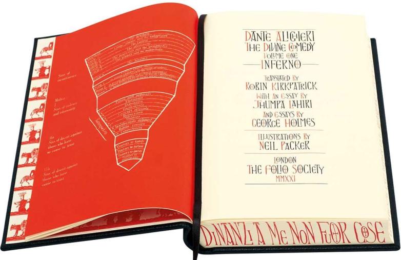 London — In commemoration of the 700th anniversary of Dante’s death in September 1321, The Folio Society determined to create the most sublime edition of The Divine Comedy. This new limited edition of one of the greatest classics of world literature is truly a work of art. Three exquisite leather-bound books feature 100 illustrations by Neil Packer, in a limitation of just 700 hand-numbered sets each signed by the artist.