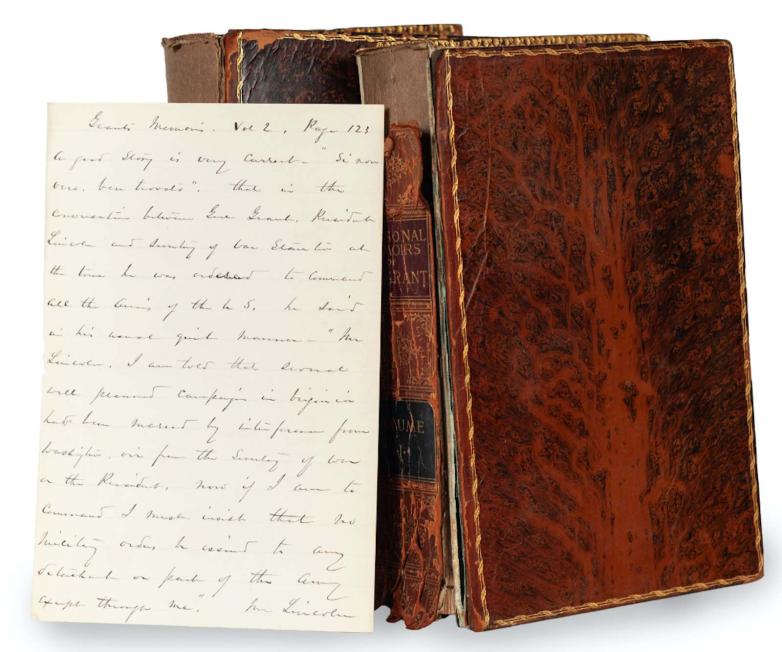 • his personal copy of Ulysses S. Grant’s memoirs featuring Sherman’s own annotations and laid-in notes (estimate: $7,500 - $15,000)