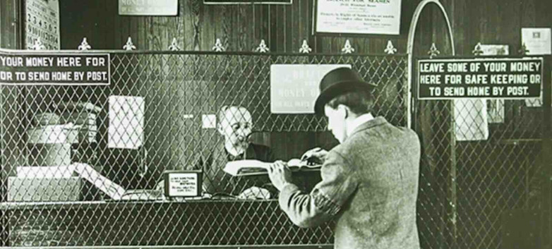 Unidentified photographer, Banking Office, State Street, circa 1902.