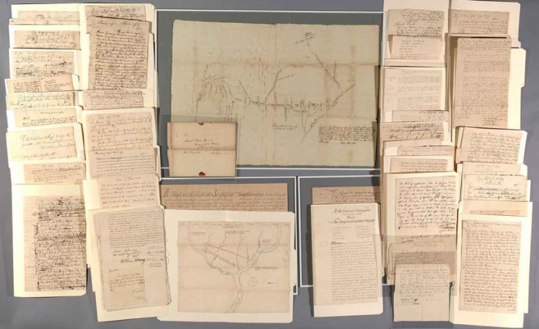 Documents of the Walking Purchase and the Councils of Easton, 75 manuscripts, including two manuscript maps, 1685–1762.