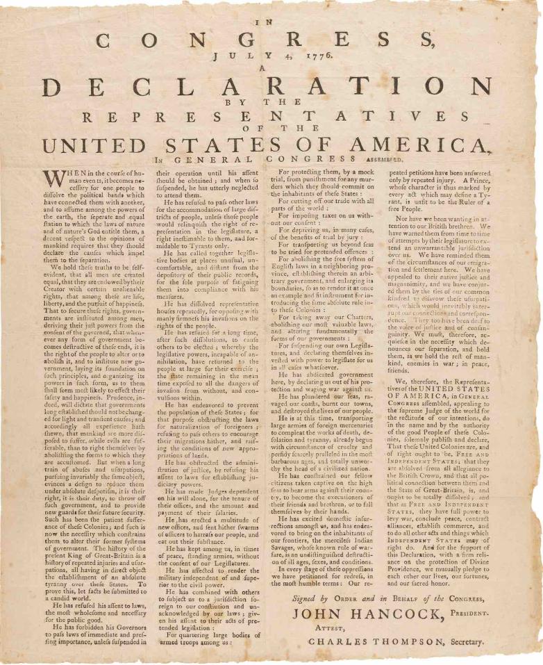 July 1776 Broadside of Declaration of Independence Sells for $2,895,000