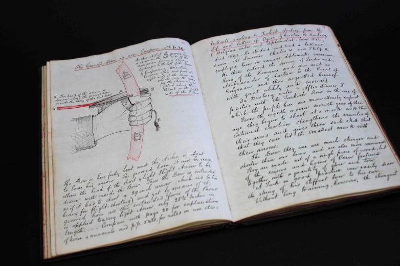 Sir Ralph Payne Gallwey (1848-1916), it appears, was a man with an extraordinary fascination for archery. Written in the first decade of the 20th century, the beautifully compiled manuscript tells of his research into Turkish and Chinese archery, a wide variety of bows and arrows, and methods of shooting. Payne Gallwey’s research was practical, and tables of flight distances, detailed illustrations and photographs of bows in use accompany meticulous hand-written notes. The manuscript also includes photographs of the extraordinary collection of weapons housed at Thirkleby Park.