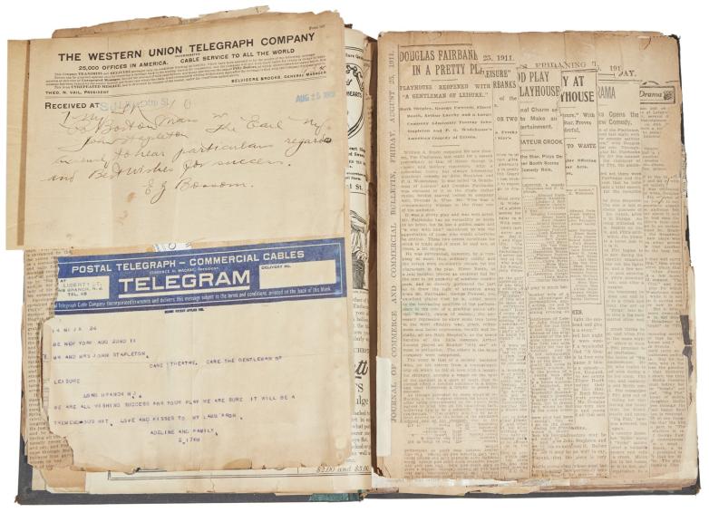 If Big Money doesn’t come through, there are a couple of other lots easily in the running to breakaway, including a corrected typescript of Wodehouse’s novel Do Butlers Burgle Banks, published in 1968. Its estimate is $5,000-8,000. Or the author’s personal scrapbooks, in four volumes, spanning 1911-1960. Each scrapbook contains newspaper clippings and magazine articles documenting his literary career—overall, a fascinating and personal compilation, estimated at $3,000-5,000.