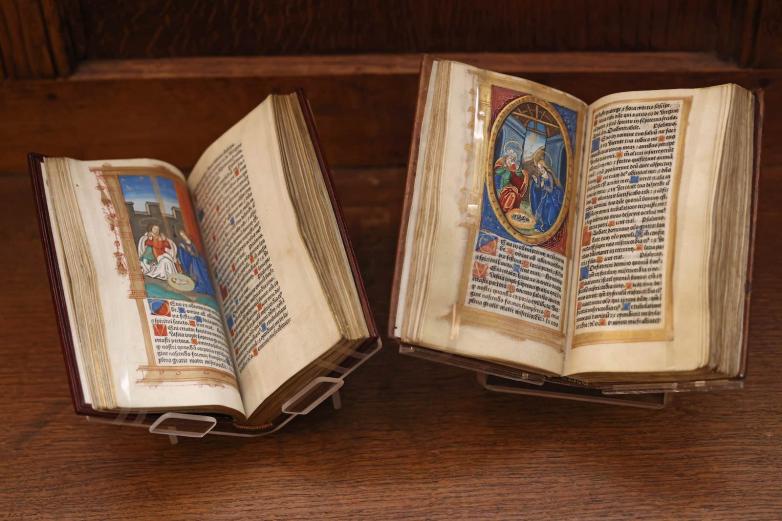 For the first time in 500 years two prayer books belonging to Catherine of Aragon and Anne Boleyn have been reunited and displayed together at Hever Castle in Kent, England.