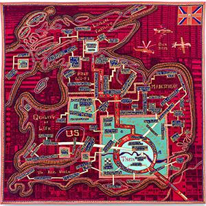 Perry’s tapestry, Red Carpet, for example was designed to express the state of the UK following the Brexit vote.