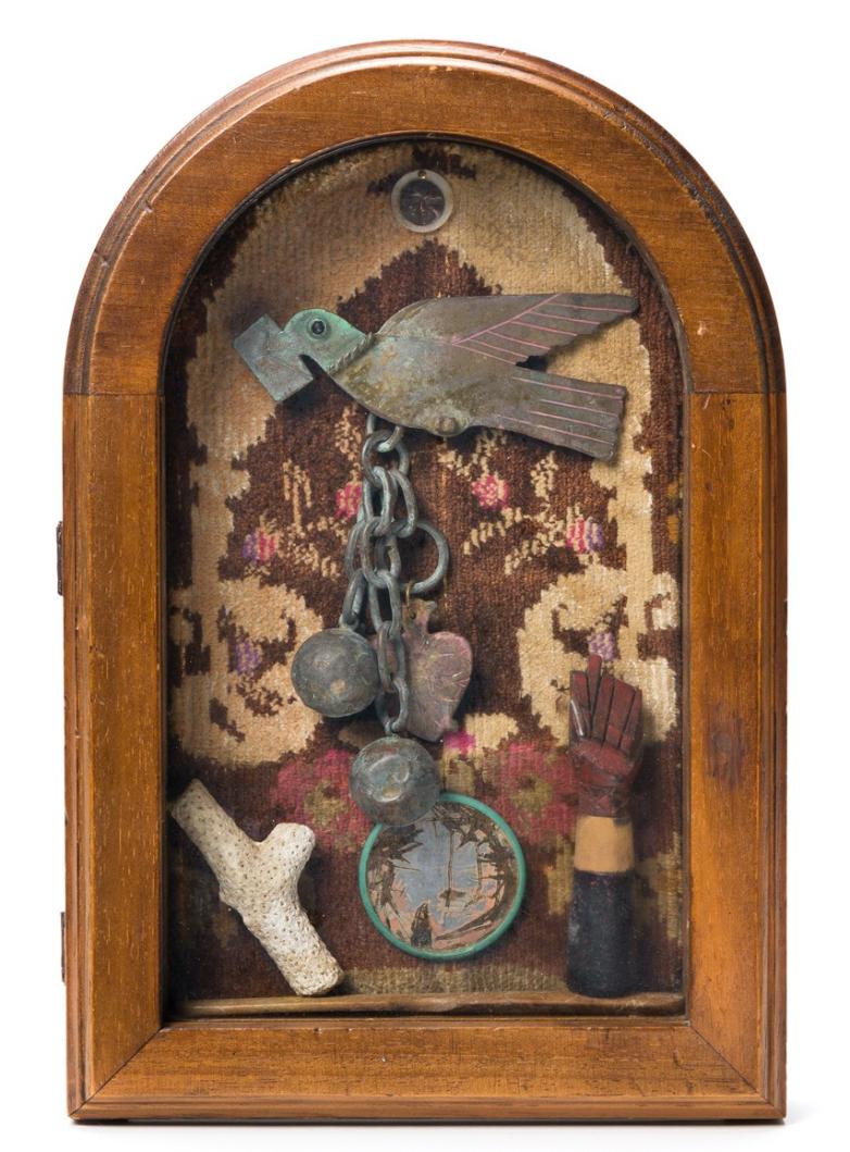 Betye Saar, Sojourn, Mixed-media assemblage in a wooden box, 1995.