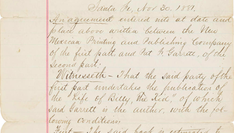 For Sale: Pat Garrett’s “Billy the Kid” Book Contract