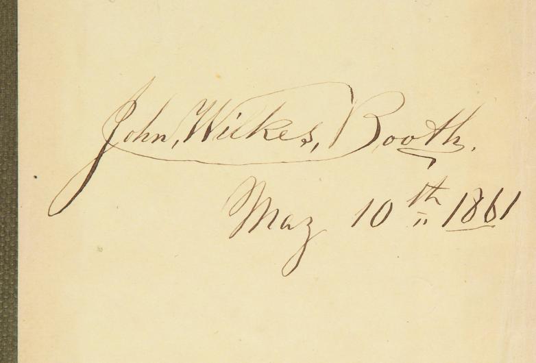 The book was signed by Booth on the inside front cover less than one month after the Civil War began.