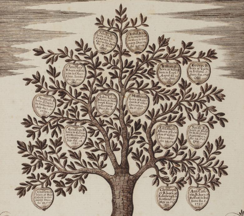 Detail from Matthias Buchinger’s hand-drawn personal family tree (1734), which sold for $50,400.