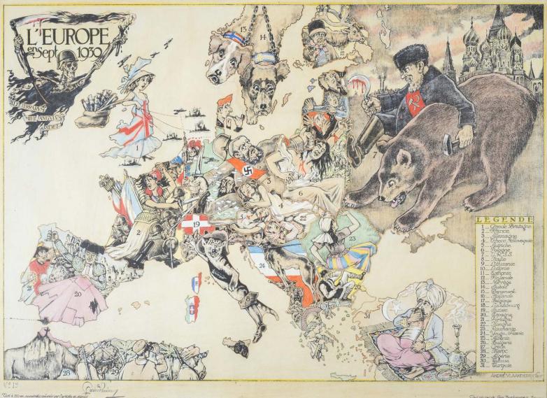 André Vlaanderen's lithographic map L'Europe en Sept 1939, offered at Forum Auctions this week.