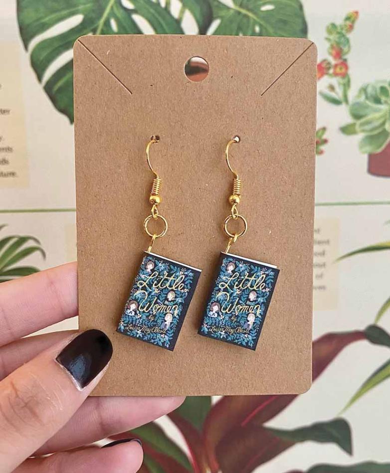 Over on Etsy, Thatch and Clover is selling super cute custom miniature book earrings. Pick a favorite title, author, even a specific edition of a work, and if an image can be sourced, they can turn your selection into some very special jewelry. Measuring ½" wide by ¾" tall, each ‘book’ is constructed of paper and card stock, with your choice of gold-tone or silver-tone metal hardware. $14.95