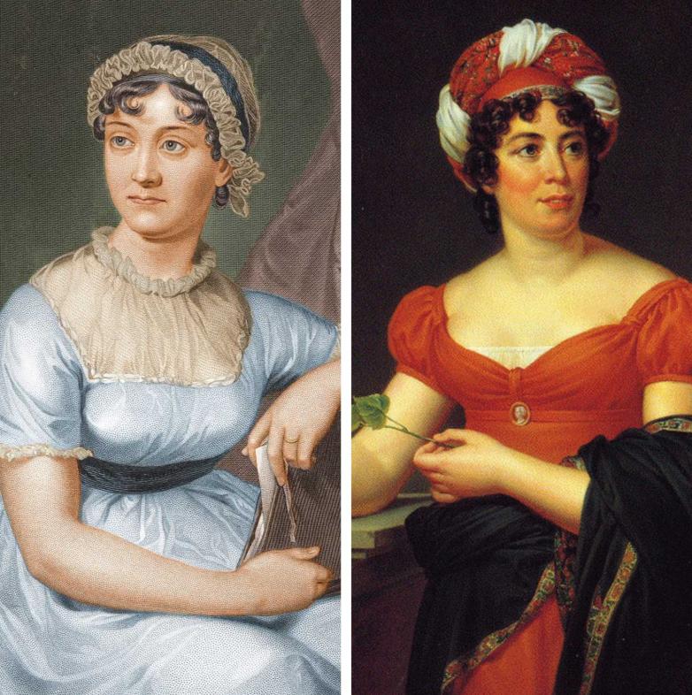 The second exhibition, Fickle Fortunes: Jane Austen and Germaine de Staël (curated by Chawton House Library’s executive director, Dr. Gillian Dow), runs through September 24. Austen died in July 1817, but that month also saw the death of Madame de Staël, a superstar of pan-European intellectual, political, and literary life. Born into a Swiss family who lived in France, Staël penned her first play at just twelve years old. She became known later in life for her writings on the philosopher Jean-Jacques Rousseau, on the trial of Marie Antoinette, and on French Revolutionary politics. She hosted salons where the leading intellectuals and politicians met, and published two novels, Delphine (1802) and Corinne, or Italy (1807), the latter of which Austen definitely read, as well as a philosophical work about Germany, De l’Allemagne (1813). Napoleon had this last work pulped during printing because of its sympathetic view of Germany, and this delayed its publication for three years. It was one of many such acts in a long-standing public feud between the two figures. The exhibition aims to put Staël back on the intellectual map, whilst also considering Austen’s extraordinary popularity, and showing how, in the two centuries since 1817, the reputations of these two women writers have realigned in ways that would have astonished their contemporaries.